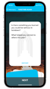 This October, we are thrilled to announce the global launch of the Sanctuary app. The app includes a card game, Together Again,  that encourages conversations about faith, mental health, and wellbeing through a mix of lighthearted and contemplative questions. Download it for Apple iOS or Android.